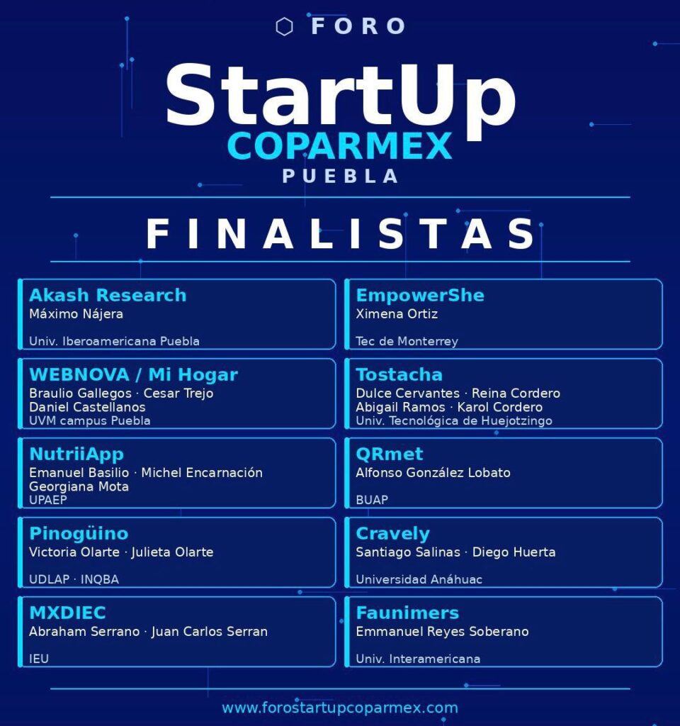 La final se llevará a cabo el próximo 30 de abril en el Auditorio Metropolitano, ubicado al sur de la capital poblana, donde los proyectos finalistas competirán por destacar como las mejores propuestas emprendedoras del estado.