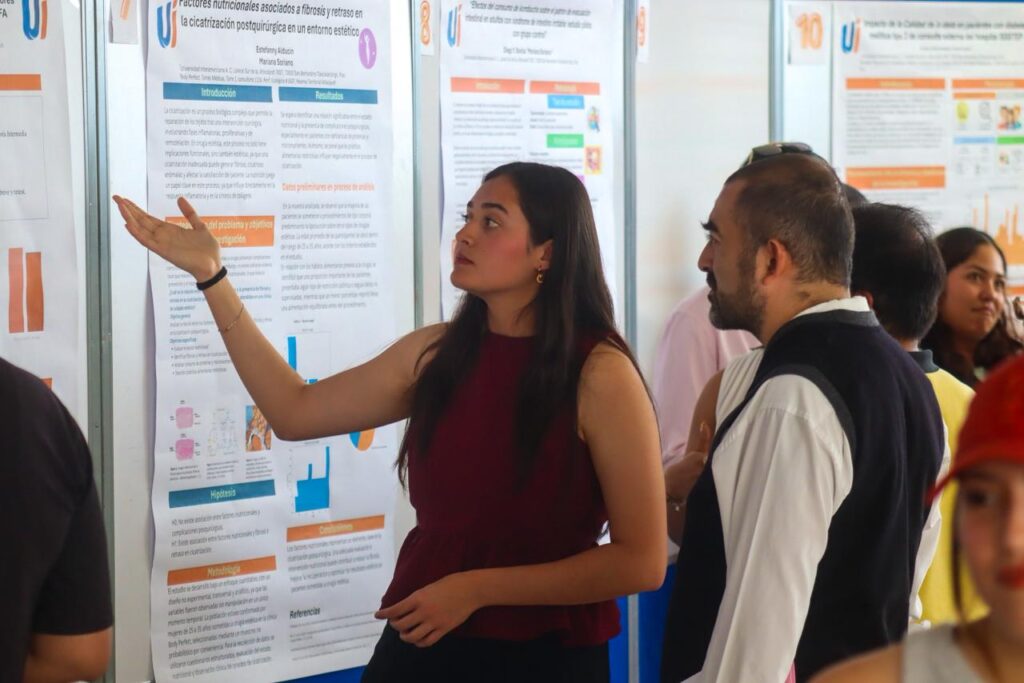 Durante esta actividad, desarrollada en el primer piso del edificio Elipse de la institución, se presentaron diversos proyectos de investigación elaborados por estudiantes a lo largo del ciclo escolar, mostrando avances significativos en temas relacionados con la salud.